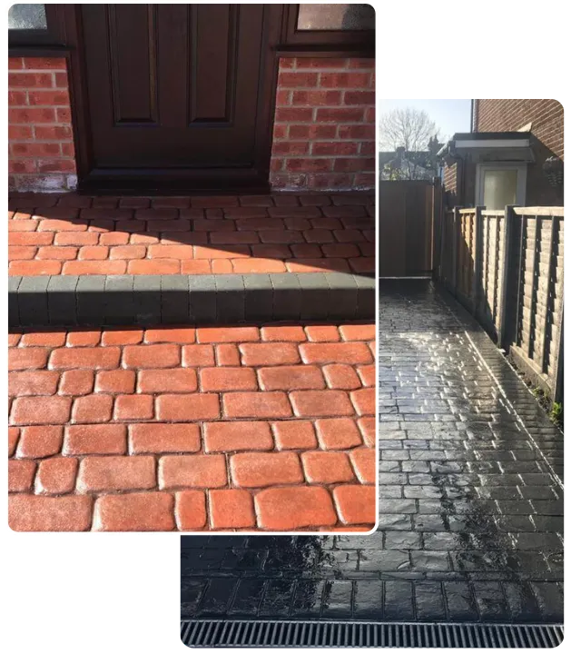Imprinted concrete is a poured concrete surface that is coloured and patterned to look like brick, slate, cobbles or stone.